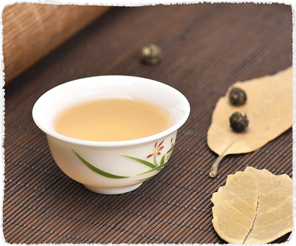 Il s'agit d'un type de thé vert spécial, avec une méthode de fabrication différente de la plupart des autres thés verts. Après avoir façonné les feuilles de thé en perles, des boutons de fleurs de jasmin frais sont empilés dessus pour leur permettre d'absorber le parfum caractéristique du jasmin.