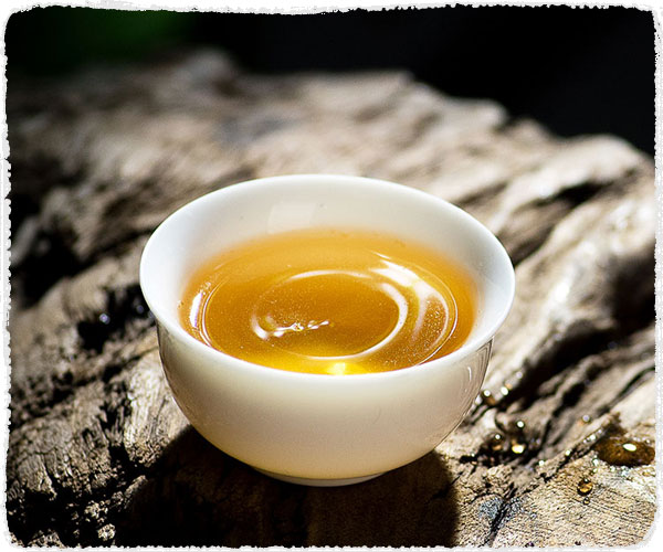 La galette et les feuilles humides après infusion évoquent un fort parfum de thé d'arbre ancien mêlé à l'arôme d'orchidée et de nectar. La saveur de la liqueur est riche et légèrement astringente mais son intensité évolue rapidement vers un arrière-goût sucré et un parfum durable.