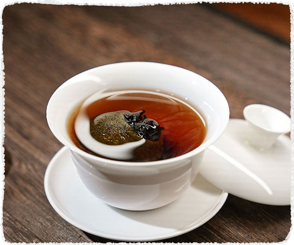 Il en résulte des feuilles foncées (oxydées), une liqueur plus foncée que de celle d’un thé vert et une saveur originale, douce et moelleuse avec notes de fruits confits et une bonne présence en bouche. |