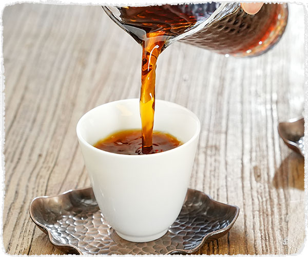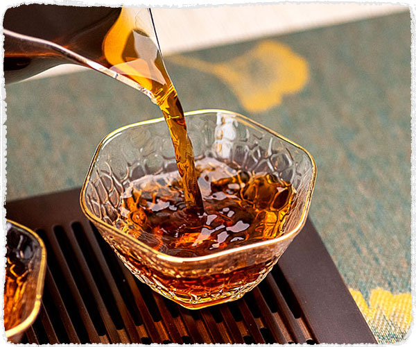 La première gorgée révèle un parfum d'agrumes frais et vif, mêlé au subtil arôme boisé du Pu'Er aux bourgeons violets, créant un profil riche et complexe. Délicate et onctueuse, la note d'agrumes est vive et rafraîchissante sans dominer le thé. Elle complète parfaitement la profondeur moelleuse du Pu'Er cuit.