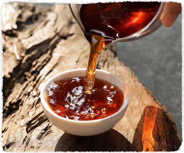 La liqueur, rouge vermillon à bordeaux, selon la durée et le rang de l’infusion, dégage des arômes de sous-bois et une saveur douce bien équilibrée. La saveur « forestière » du Pu Ehr et sa couleur « café noir » peuvent être déroutantes pour le néophyte, mais l’on s’y habitue très vite et l’on devient « accro » rapidement.