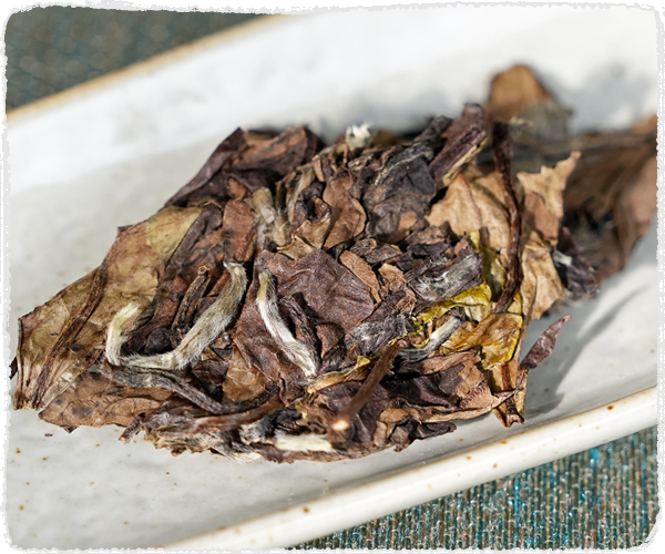 La particularité de ce Shou Mei est d’avoir vieilli pendant plus de sept ans avant sa compression. Il est maintenant à sa période de consommation optimale. |