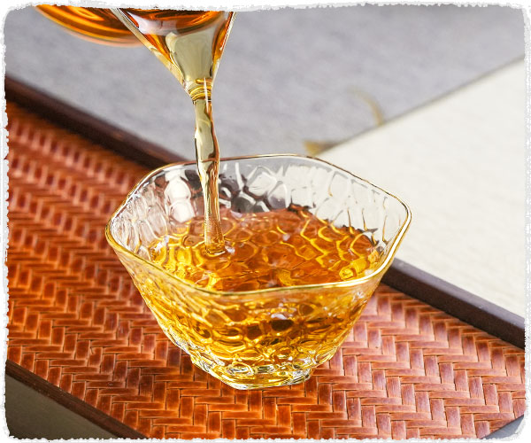 Placez le thé dans une théière encore humide et préalablement rincée et réchauffée avec de l'eau chaude, secouez-le doucement, et le parfum est rapidement stimulé : une odeur fleurie, couplée à un parfum de fruit et de miel, rafraîchissant et agréable. |