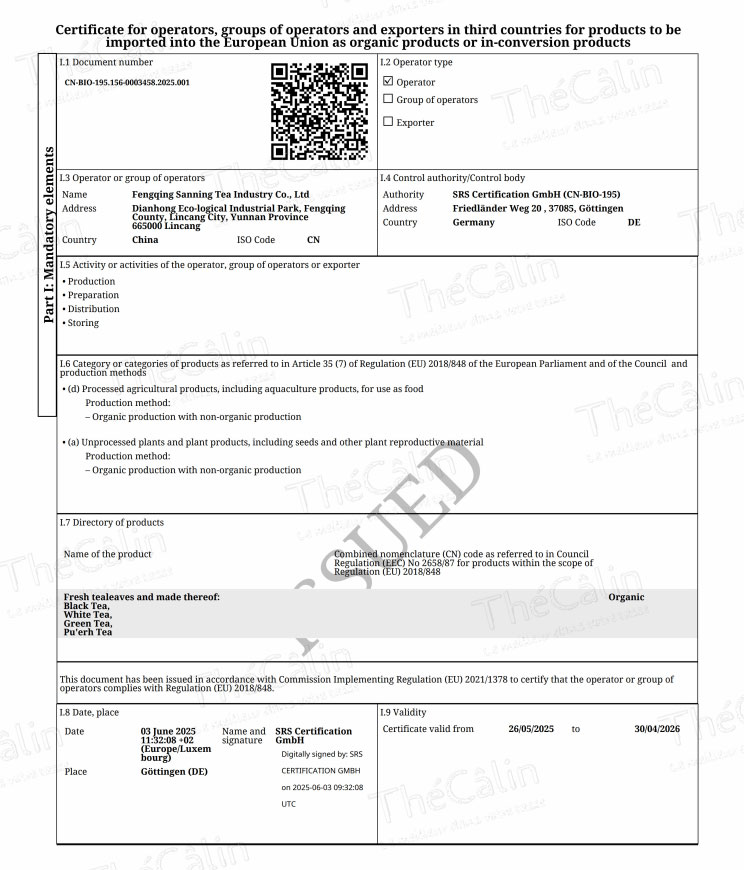 EU Certification (CN-BIO-195.156-0003458.2025.001) |