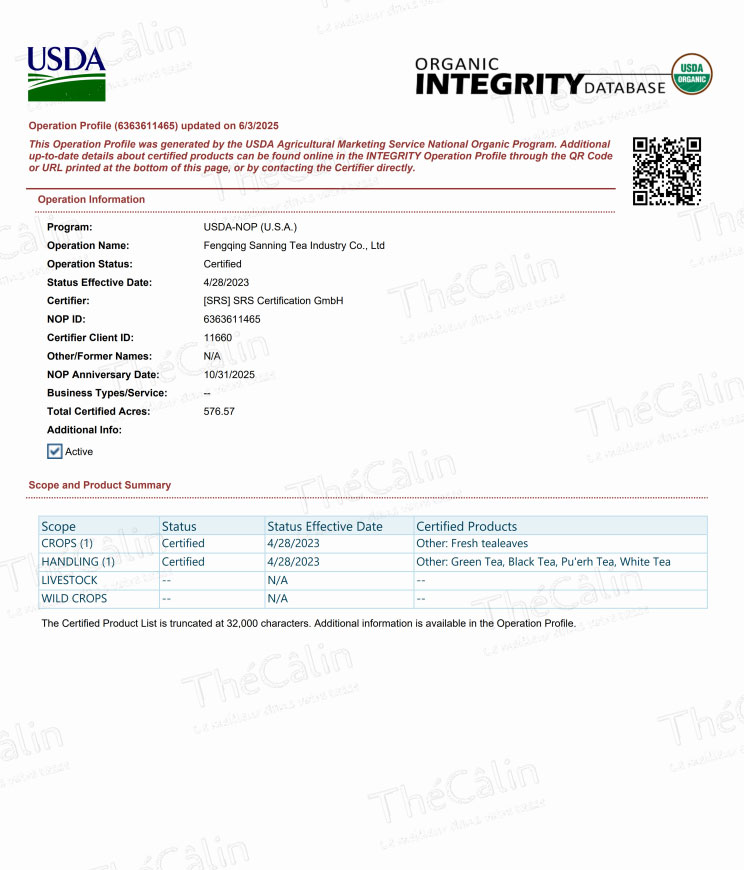 | USDA Certification (NOP ID: 6363611465) |