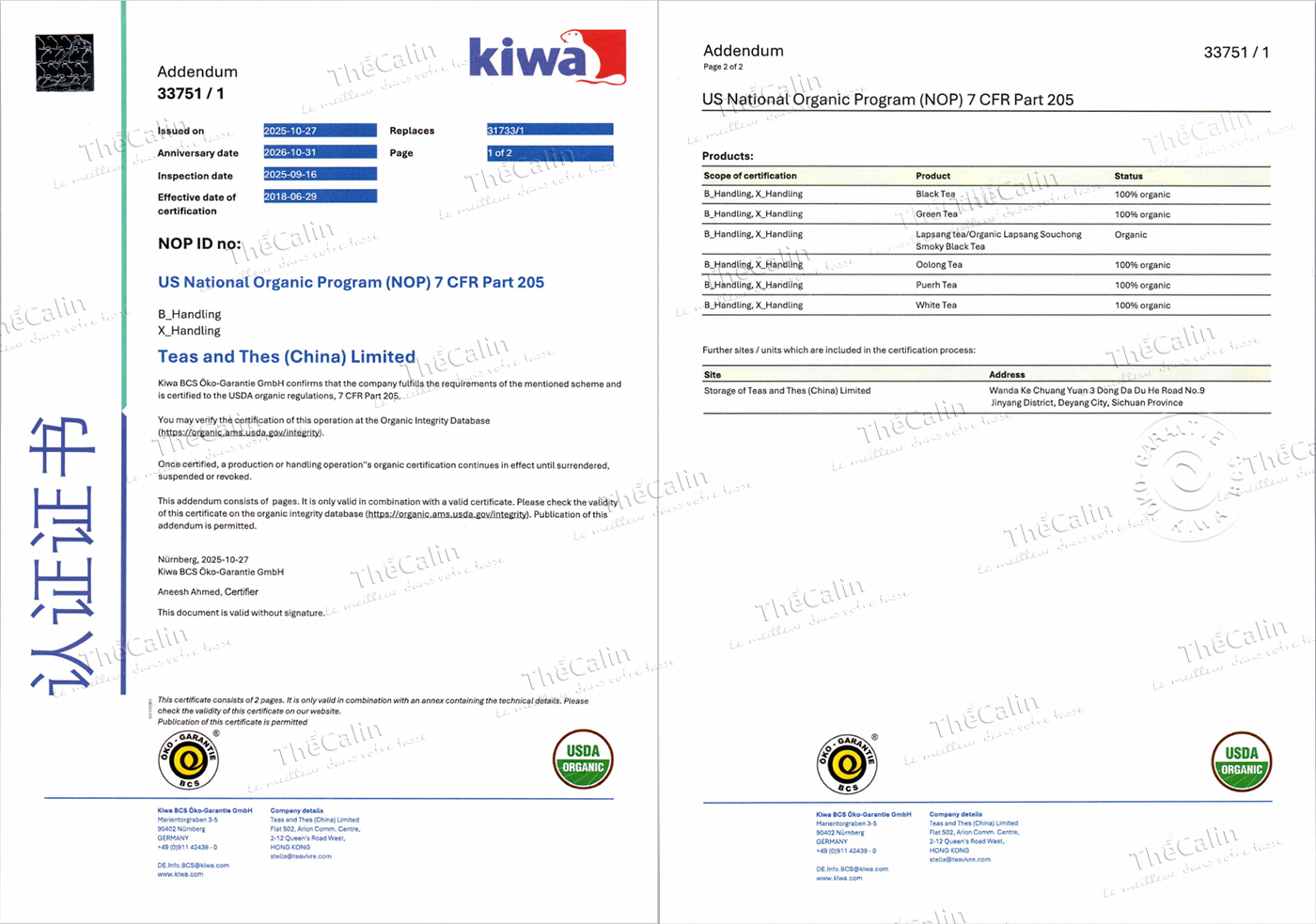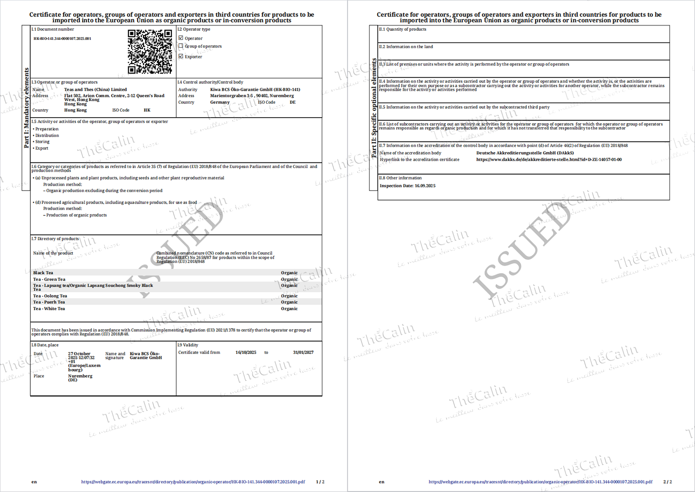 | USDA Certification | EU Certification (HK-BIO-141.344-0000107.2025.001) |